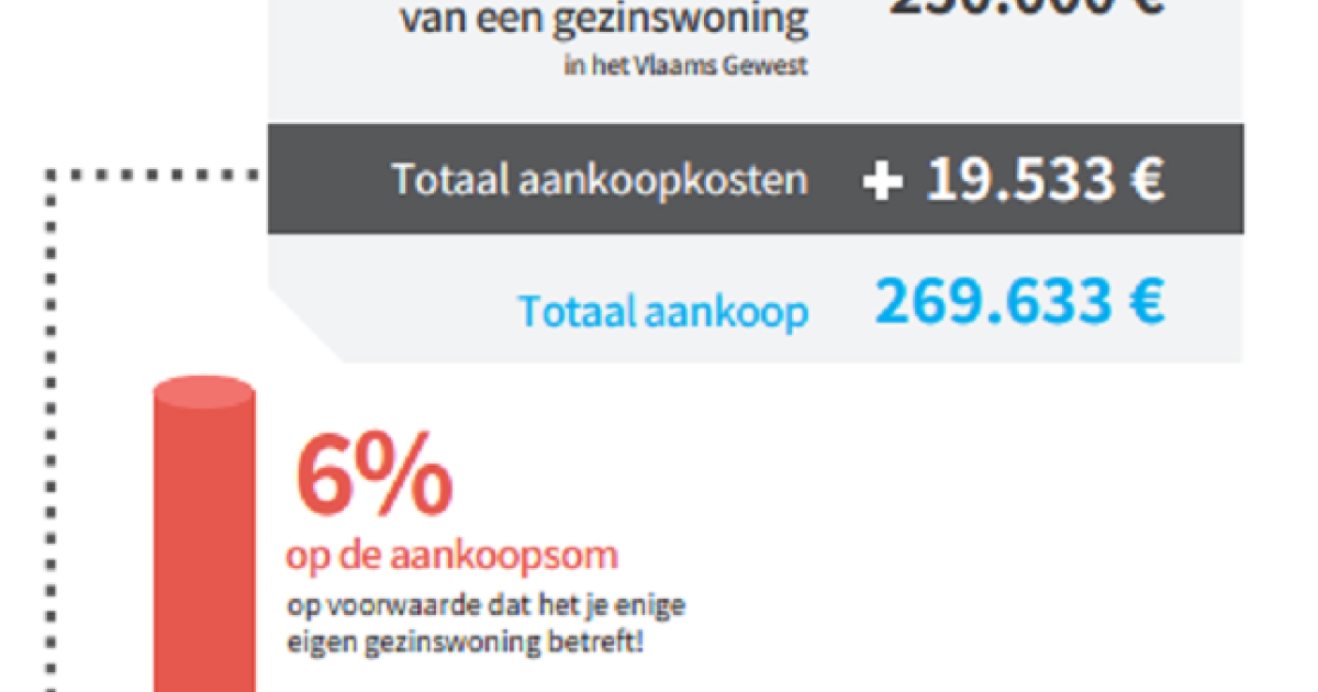 Naast de prijs, vormen de belastingen het grootste deel van de aankoopkosten. In Vlaanderen tel je in de meeste gevallen 10% (standaardtarief) of 6% (verlaagd tarief voor de aankoop van een