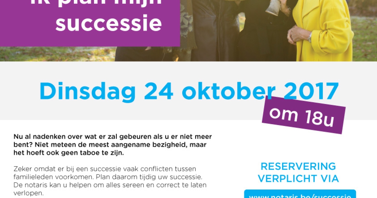 Gratis infosessie ‘Ik plan mijn successie’ op dinsdag 24 oktober 2017