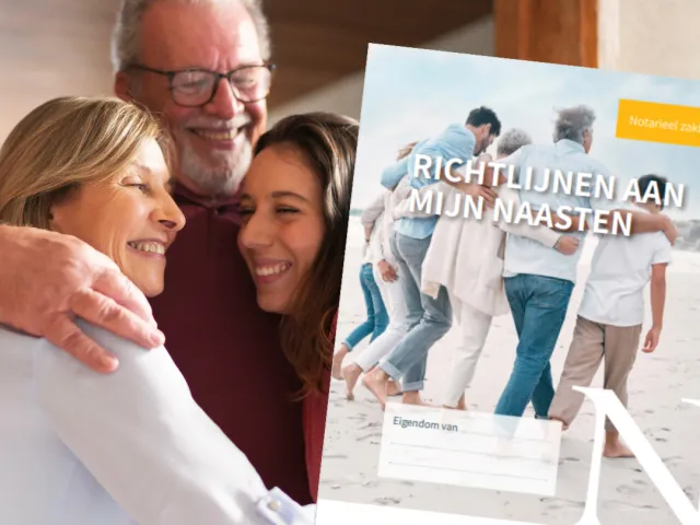 .be heeft daarom een praktische brochure uitgewerkt die je toelaat bepaalde gegevens en wensen in te vullen. Het notarieel zakboekje ‘richtlijnen aan mijn naasten’ houdt zowel rekening met patrimoniale gegevens, als gegevens met betrekking tot de familiale situatie en meer praktische zaken.